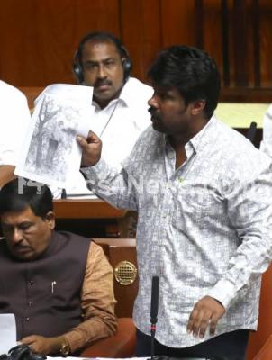 Photo Caption : BJP MLA Raju Gowda addressing during Assembly session at Vidhana Soudha, in Bengaluru on Thursday 12th July 2018