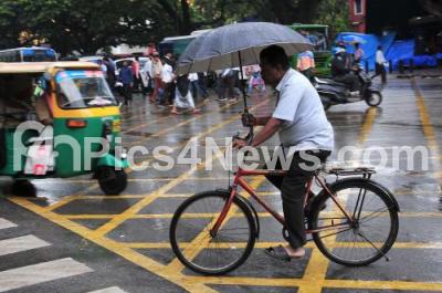Photo Caption : People using umbrella to protect themselves from the rain as heavy rains lashed Bengaluru City, on Friday 13th July 2018