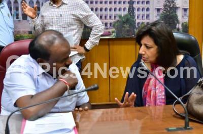 Photo Caption : CM HD Kumarswamy held a meeting with Kiran Mazumdar Shah, CMD BIOCON at Krishna, in Bengaluru on Saturday 14th July 2018
