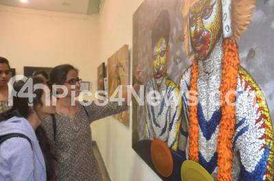 Photo Caption : Visitors admiring the panting exhibition “Mandala†by Jayadevanna TS at Chitrakala Parishat, in Bengaluru on Tuesday 17th July 2018