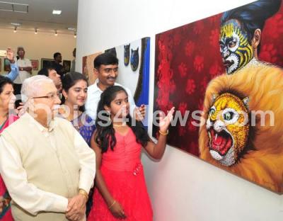 Photo Caption : Jnanpith Awardee, Chandrashekar Kambar, seen admiring the panting exhibition “Mandala†by Jayadevanna TS at Chitrakala Parishat, in Bengaluru on Tuesday 17th July 2018