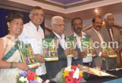 Photo Caption : Dr NR Shetty, Chancellor of Central University of Karnataka with Dr KR Venugopal, Vice Chancellor Bangalore University, Dr Bai Shi Yin Guang Bo, VP, International Green Economy Association, Dr BK Byrappa, Former Vice Chancellor Mangalore University and others releasing an Abstract Book on International Conference on Medicinal Plants and Drug Discovery during the International Conference on Medicinal Plants and Drug Discovery at Hotel Capitol, in Bengaluru on Wednesday 18th July 2018