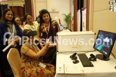 Photo Caption : Dr Hema Diwakar, Popular Gynecologist with other doctors seen the exhibition stall of medical equipments being displayed at the 2 day national conference “Endovision 2018†at Hotel Le Meridian, in Bengaluru on Saturday 21st July 2018