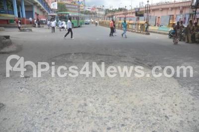 Photo Caption : Huge crater like pothole seen at the Majestic Bus Stand, in Bengaluru on Saturday 21st July 2018