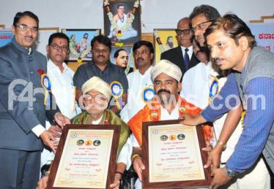 Photo Caption : LD Chandavari receiving Santa Ravidasa award and Markandaiah Dodamani receiving Sharana Haralaiah award at an award presentation programme, organised by Karnataka State Sharana Haralaiah and Santa Ravidasa Mahasabha at Legislative House, in Bengaluru on Sunday 22nd July 2018