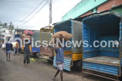 Event Description : Goods being transported by mini vans and tempo at Tharagupet near KR Market, due to ongoing lorry strike, in Bengaluru on Tuesday 24th July 2018