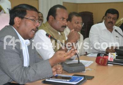 Photo Caption : Mayor Sampath Raj with BBMP Commissioner Manjunath Prasad, Padmanabha Reddy, Opposition leader BBMP and Lakshman, Pollution Control Board Chairman, addressing a press conference C 40 cities and shared global experiences on improving the air quality during a workshop at BBMP Office, in Bengaluru on Friday 27th July 2018
