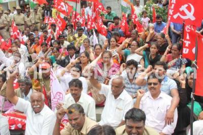 Event Description : Members of Karnataka Farmers Association, affiliated to CITU staged a protest and demanded to implement Swaminathan Report, the protest was held at Town Hall, in Bengaluru on Thursday 9th August 2018