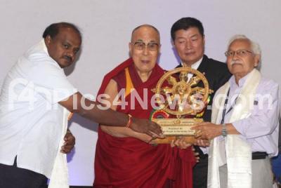 Photo Caption : Tibetan spiritual leader and Nobel laureate Dalai Lama and CM HD Kumarswamy, felicitating Prof S N Kiran Shankar (son of late S Nijalingappa) at “Thank You, Karnatakaâ€, an event to mark 60th year of Tibetan arrival to India at Hotel Taj West End, in Bengaluru on Friday 10th August 2018