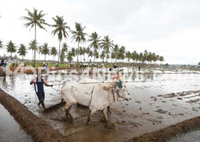 Photo Caption : Farmers ploughing the paddy crop of the monsoon season during CM HD Kumarswamy visit to the Sitapura village in the Mandya district on Saturday 11th August 2018