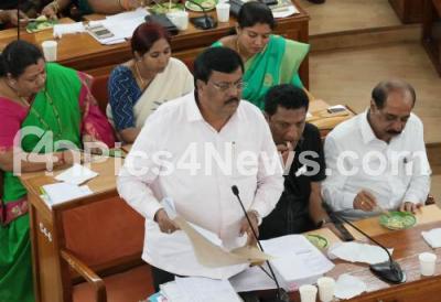 Photo Caption : BBMP opposition leader Padmanabha Reddy addressing during BBMP council meeting at BBMP, in Bengaluru on Monday 13th August 2018