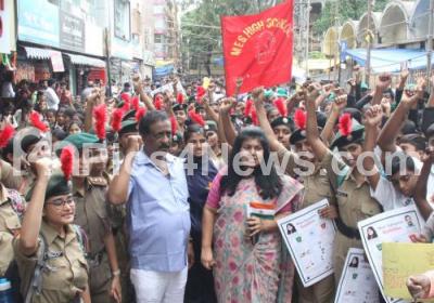 Photo Caption : MLA Sowmya Reddy with students participated in awareness campaign on Garbage Segregation and not to use plastic materials in Jayanagar, in Bengaluru on Tuesday 14th August 2018