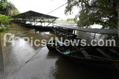 Photo Caption : Ranganathittu bird sanctuary has been flooded due to which the boating has been cancelled following heavy release of water from the KRS Dam and heavy rains near Srirangapatna of Mandya district, on Tuesday 14th August 2018