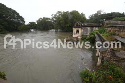 Event Description : Wellesley bridge in Srirangapatna is barely one feet away from getting submerged, the Saibaba temple in Srirangapatna and farmlands nearby are flooded due to the recent rains and discharge of water from reservoirs in Cauvery basin, in Srirangapatna on Tuesday 14th August 2018