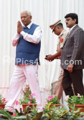 Photo Caption : Karnataka Governor Vajubhai Vala arriving to addressing media to announce the opening of gates of Rajbhavan to the general public from 16th to 31st August, in Bengaluru on Thursday 16th August 2018