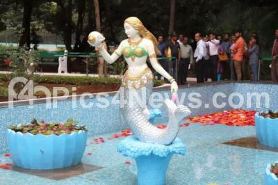 Water Fountain at Rajbhavan during a media visit to Rajbhavan as Karnataka Governor Vajubhai Vala,not in picture announce the opening of gates of Rajbhavan to the general public from 16th to 31st August, in Bengaluru on Thursday 16th August 2018