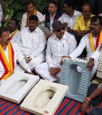 Event Description : Members of Kannada Chaluvali Vatal Paksha and its president Vatal Nagaraj staged a protest against the BBMP infornt of the BBMP Head Office, in Bengaluru on Tuesday 21st August 2018