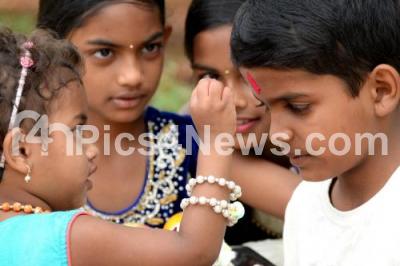Event Description : Girls seen tying sacred thread raksha bandhan to their brother on the occasion of Raksha Bandhan Festival, in Bengaluru on Sunday 26th August 2018