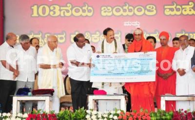 Photo Caption : Vice President of India Venkaiah Naidu with CM HD Kumarswamy, Dr Shivaratri Desikendra Swamiji, BJP State President B S Yeddiyurappa, Ministers Sa Ra Mahesh, G T Devegowda, C S Puttaraju and others seen during 103rd Jayantotsava of Paramapujya Jagadguru Sri Shivarathri Rajendra Mahaswamiji at Suturu Mata, in Mysuru on Tuesday 28th August 2018