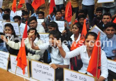 Photo Caption : Members of ABVP protest against the central Government for immediate release of SC ST and OBC students scholarships, the protest was held Bennappa Park, in Bengaluru on Thursday 30th August 2018