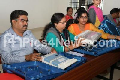 Polling officials collect EVMs and others material for the Mysore City Corporation (MCC) elections to be held tomorrow in Mysuru on Thursday 30th August 2018