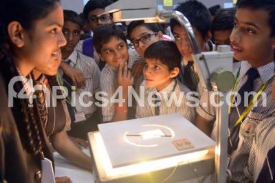 Photo Caption : Students from Various Schools take part and participate in "Science in Action" a 3 day Science exhibition at Jawaharlal Nehru Planetarium , in Bengaluru on Friday 31st August 2018