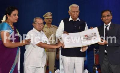 Photo Caption : Governor Vajubhai Vala with Charles Lobo, Chief Postmaster General, Prof BR Seshadri Iyengar and others inaugurated the Diamond Jubilee Celebrations of Bharatiya Sikshana Samiti and released the Souvenir of Platinum Jubilee Celebrations of Gandhinagar Higher Secondary School at Gandhinagar Higher Secondary School premises, in Bengaluru on Saturday 1st September 2018