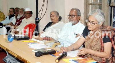 Photo Caption : Dr K Marulasiddaiah, Ramachandra Guha, Dr Vijayamma, Film Director MS Sathyu, Film Actor Govindarao, MLA BR.Patil, and others during the inaugural programme of the Literary Meet for the Tolerance Conference at Senate Hall, Central College, in Bengaluru on Sunday 2nd September 2018