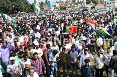 Photo Caption : JDS and Congress workers celebrate after Local body election results were announced, in Mysuru on Monday 3rd September 2018