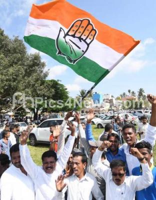 Photo Caption : Congress workers celebrate after Local body election results were announced, in Mysuru on Monday 3rd September 2018