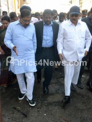 Photo Caption : DCM Dr G Parameshwar with MLA Roshan Baig, Mayor Sampath Raj, Manjunath Prasad, BBMP Commissioner and others inspected the roads at Shivajinagar Constituency during the Bengaluru City rounds, in Bengaluru on Tuesday 4th September 2018