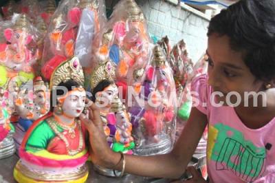 People shopping for Gauri idols for the Gauri and Ganesha Chaturthi festival , in Bengaluru on Tuesday 11th September 2018