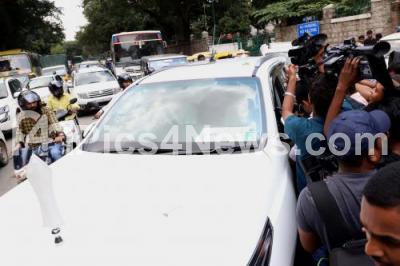 Photo Caption : Media people covered Minister DK Shivakumar, car after he attended the court to take bail at Magistrate court, in Bengaluru on Saturday 15th September 2018