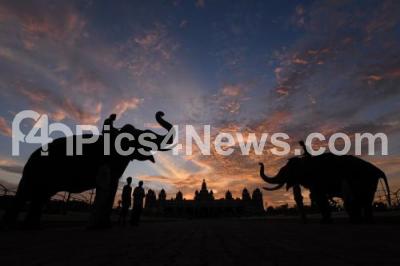 Event Description : Dasara elephants seen in the back drop of Mysore Palace during the sunset in Mysuru on Wednesday 19th September 2018