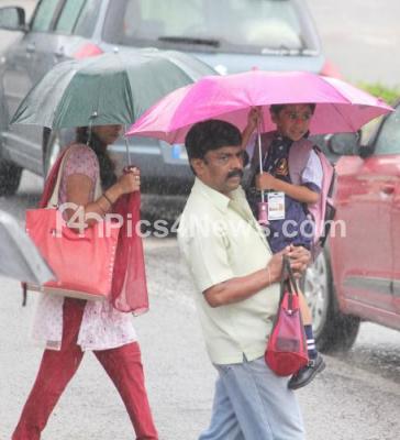 People using umbrella to protect from the rain at University quarters due to Heavy rain in the city in the early hours, in Bengaluru on Monday 24th September 2018