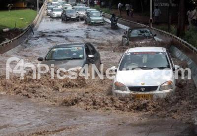 Event Description : Rain water logged at Hebbal Flyover underpass due to heavy rain fall, in Bengaluru on Tuesday 25th September 2018