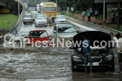 Event Description : Rain water logged at Hebbal Flyover underpass due to heavy rain fall, in Bengaluru on Tuesday 25th September 2018