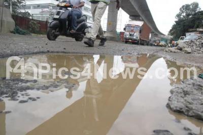 Photo Caption : Pothole road on Rajarajeshwari Arch, Mysore Road, have gone bad to worse after recent rains and have been causing a major threat to the motorists, in Bengaluru on Wednesday 26th September 2018