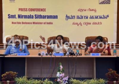 Photo Caption : Defence Minister, Nirmala Sitharaman, addressing a press conference at Yelahanka Airforce Station, in Bengaluru on Sunday 30th September 2018