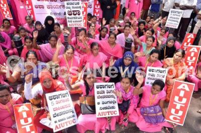 Event Description : Members of Asha workers protesting to fulfill their various demands at SBM circle, in Bengaluru on Wednesday 3rd October 2018
