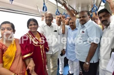 Photo Caption : CM HD Kumarswamy with DCM Dr G Parameshwara, Mayor Nagambike Mallikarjuna, MP PC Mohan and others at the inauguration of METRO six coaches at Majestic, Kempegowda Station, in Bengaluru on Thursday 4th October 2018