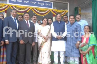 Minister KJ George, BBMP Mayor Gangambike Mallikarjuna, Special Director and Department of Science and Technology GOK, Dr Honne Gowda and others seen during the Inauguration of UR Rao Vigyana Bhavan at Horticulture University Campus, GKVK, in Bengaluru on Wednesday 10th October 2018