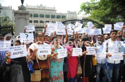 Event Description : Karnataka Public Service Commission (KPSC) candidates staged a protest and demanded for announcement of the KPSC results at the earliest, the protest was held in front of Karnataka Public Service Commission office, in Bengaluru on Friday 12th October 2018