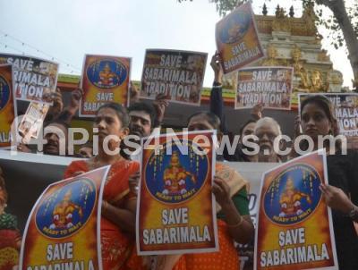 Event Description : Large number of Lord Ayyappa Devotees took out a Sarana Gosham Yatra from Vara Siddhi Vinayaka Ayyappa Swamy Temple to Sivanchetty Garden, as part of Save Sabarimala campaign to protest against the Supreme Court order allowing women of all ages to enter the Sabarimala Temple, in Bengaluru on Saturday 13th October 2018