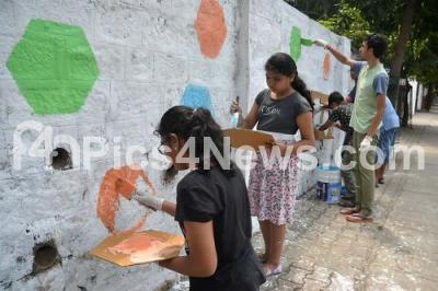 Photo Caption : Volunteers participated in wall painting campaign at Palace Road, in Bengaluru on Sunday 14h October 2018