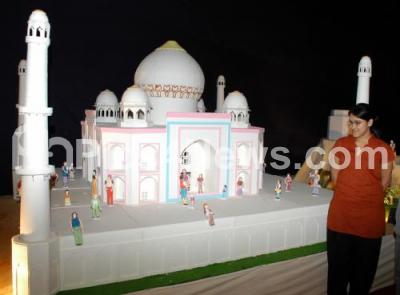 Photo Caption : Visitors looking the model of Taj Mahal which is prepared with cake, during the 34th annual Cake Exhibition and Sale at St Joseph High School Ground organized by The Nilgiri Dairy Forum Private Ltd, in Bangalore on Friday 19th December 2008
