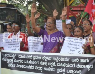 Event Description : CPIM members staged a protest and demanded for security for woman entering Sabarimala Temple, the protest was held at SBM Circle, in Bengaluru on Tuesday 16th October 2018