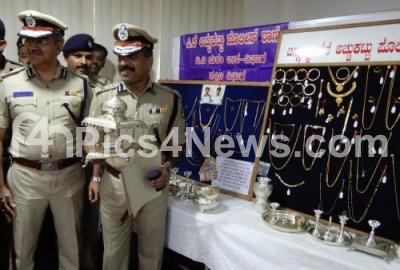 Photo Caption : T Suneel Kumar, Commissioner of police Bengaluru City, inspecting the recovered stolen property, worth 84 lakhs, from Bengaluru South Division Police Station limits of Chennammanakere Achukattu, Hanumanthanagar and Girinagar, being displayed a t Police Commissioners Office, in Bengaluru on Tuesday 16th October 2018