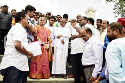 CM HD Kumarswamy with Sudha Murthy, Chairperson of the Infosys Foundation and officials inspected the Hebbal Lake in Mysuru on Thursday 18th October 2018