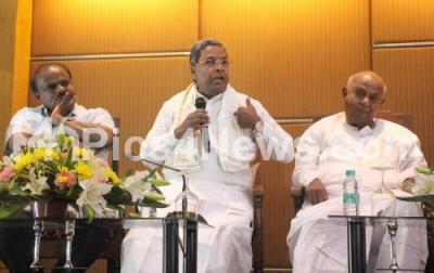 Photo Caption : JDS Supremo, HD Devegowda with Former CM and Congress Leader Siddaramaiah and Chief Minister of Karnataka HD Kumarswamy at a press conference at a private hotel, in Bengaluru on Saturday 20th October 2018